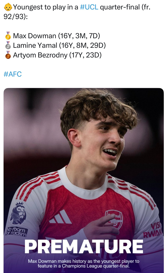 道曼,欧冠自92-93改制后的八强最年轻出场队员👶